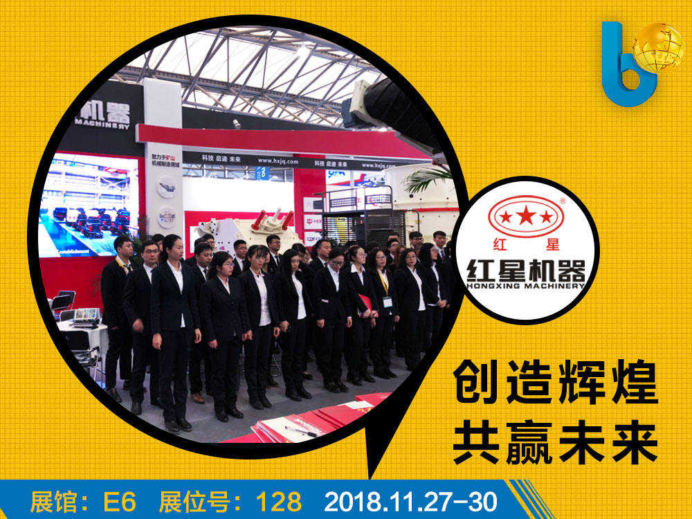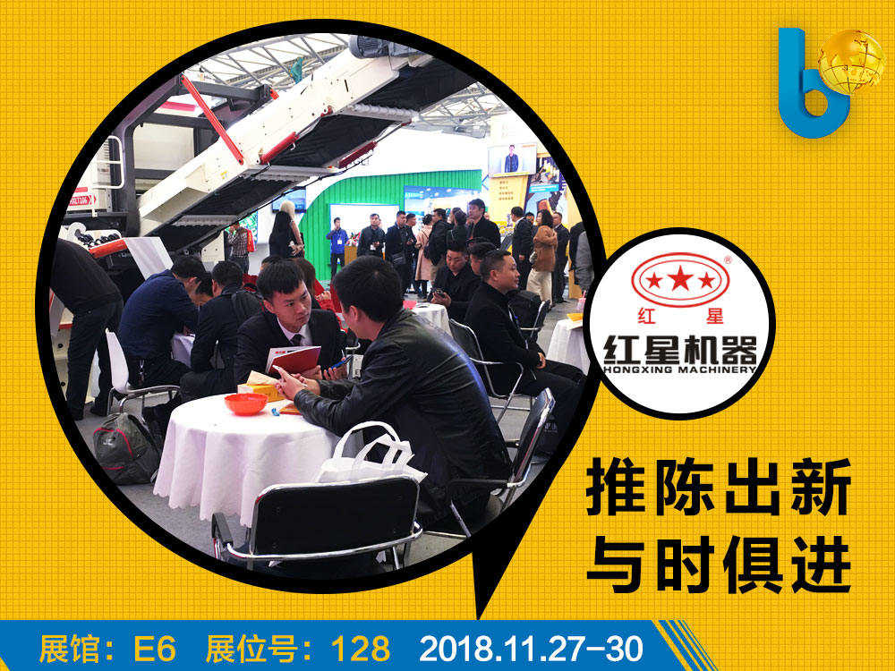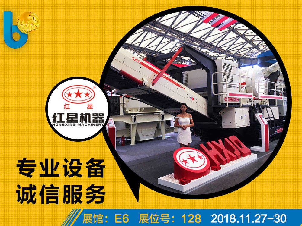2018上海寶馬展在新國際博覽心盛大開幕。紅星機器以“科技、啟迪、未來”為主題,攜移動破碎、制砂、篩分、建筑垃圾處理等多款新型設(shè)備產(chǎn)品亮相展會。