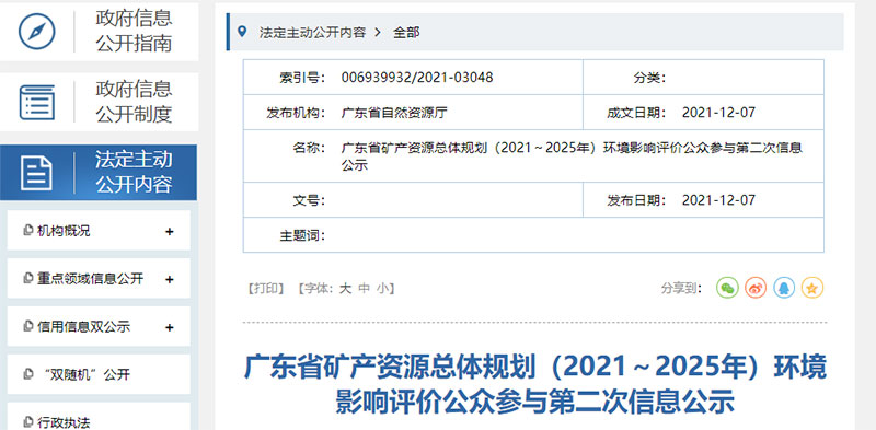 近日,廣東省自然資源廳官網(wǎng)公示了《廣東省礦產(chǎn)資源總體規(guī)劃(2021~2025 年)環(huán)境影響報(bào)告書》,涉及到了海砂出讓、礦山企業(yè)、石場(chǎng)及石料產(chǎn)能,以及機(jī)制砂產(chǎn)能,建設(shè)綠色礦山,形成礦產(chǎn)資源開發(fā)利用與環(huán)境保護(hù)協(xié)調(diào)的綠色礦業(yè)發(fā)展新格局。